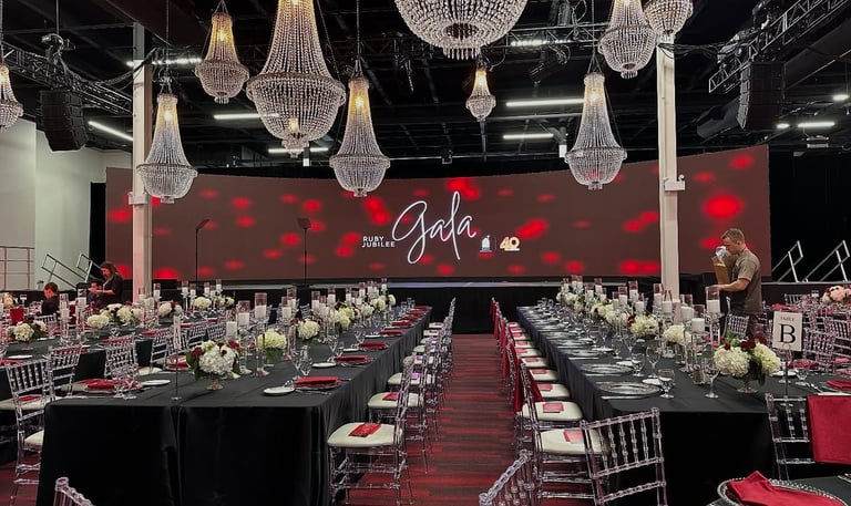 We were honoured to support the Ronald McDonald House SWO at the Ruby Jubilee Gala, celebrating 40 years of caring for families and ill or injured children. We provided a full audiovisual solution, including a high-definition 2mm curved video wall spanning sixty feet. Please reach out to our team for creative AV solutions for your next gala or presentation.